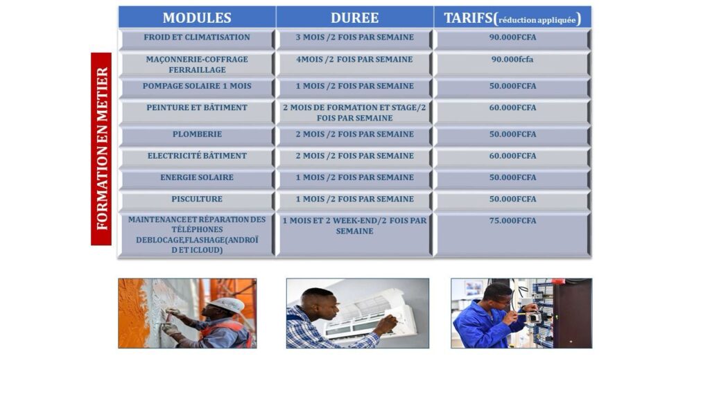 DCC.MALI , nous intervenons dans plusieurs domaines au milieu des métiers tel que: